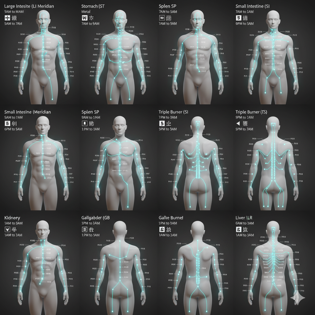 Meridiány jsou podle tradiční čínské medicíny (TČM) energetické dráhy nebo kanály, kterými v těle proudí životní energie Qi (čchi). Tvoří ucelenou síť pod kůží, která propojuje orgány a vyživuje je. Celkem existuje 12 hlavních meridiánů a 2 další, které řídí organismus